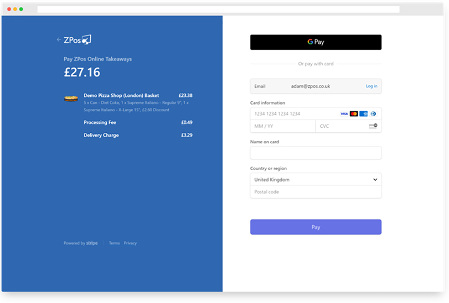 Our team of developers at ZPos have worked hard with Stripe to build a new checkout process.